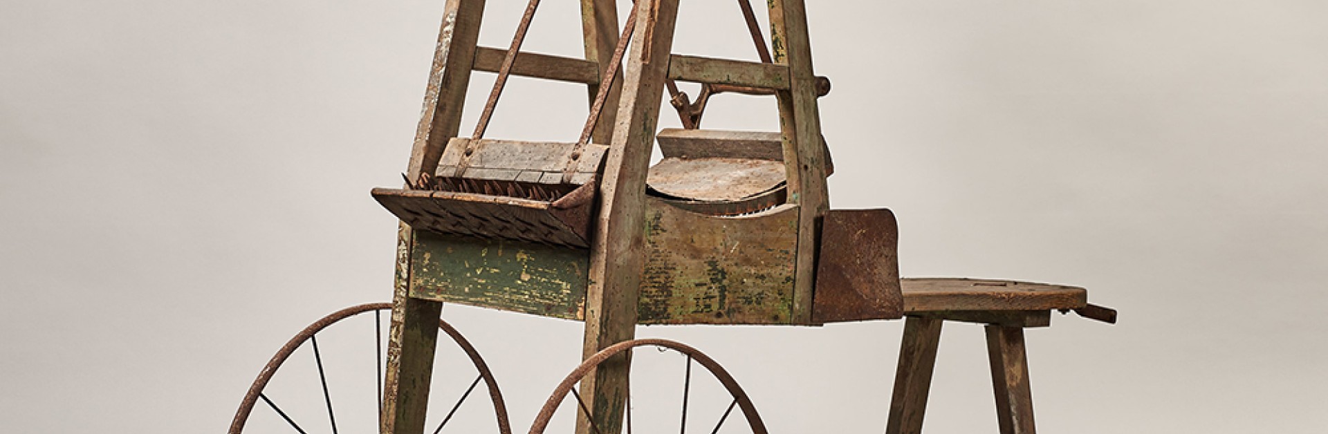 La cardeuse a été récupérée sur le trottoir lors de la sortie des encombrants par une voisine, qui a proposé l’objet à l’écomusée.
