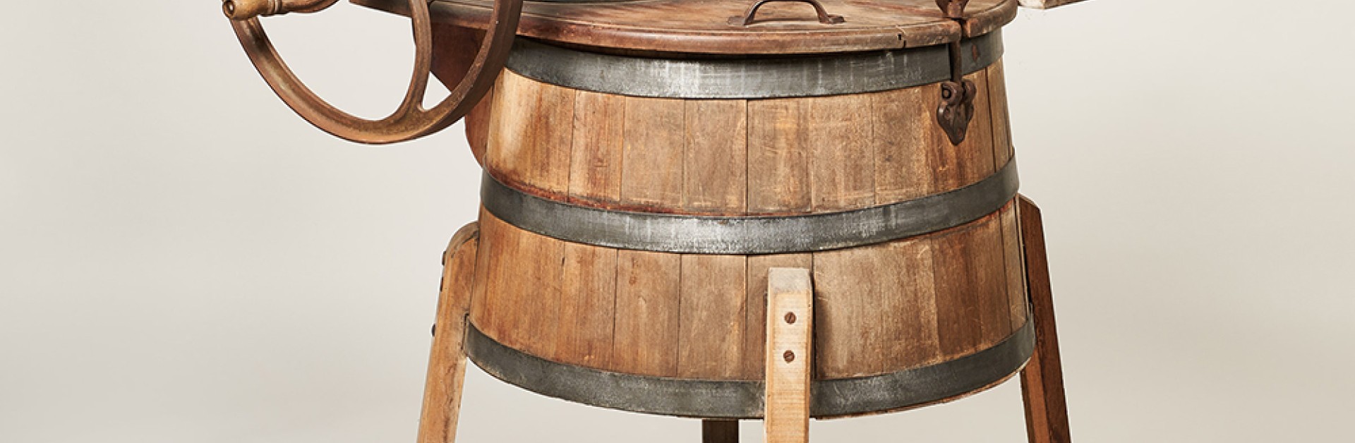Issu du machinisme agricole, le lave-linge apparaît dès la fin du XVIIème siècle en Angleterre. Le but de cette invention est de remplacer le lavage manuel par un lavage mécanique. Cette machine en bois, l’ancêtre de nos machines à laver, comporte 4 pieds, une cuve en lattes de bois avec couvercle et un mécanisme de manivelle.