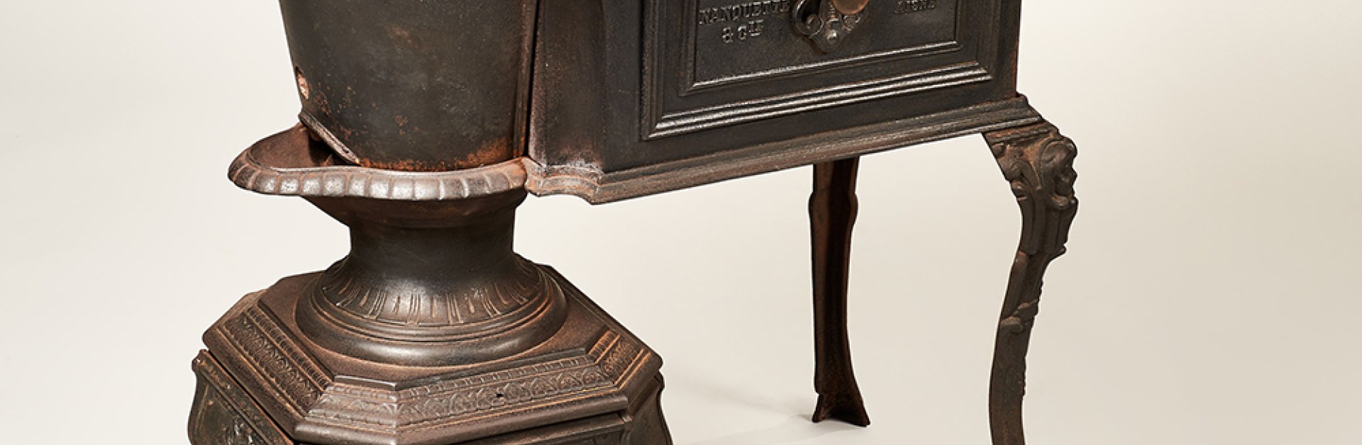 Ce poêle à trois pieds est destiné à chauffer trois fers : un grand, un moyen et un petit. Il est en fonte de fer, a été fabriqué dans le Nord et utilisé en Ile-de-France.